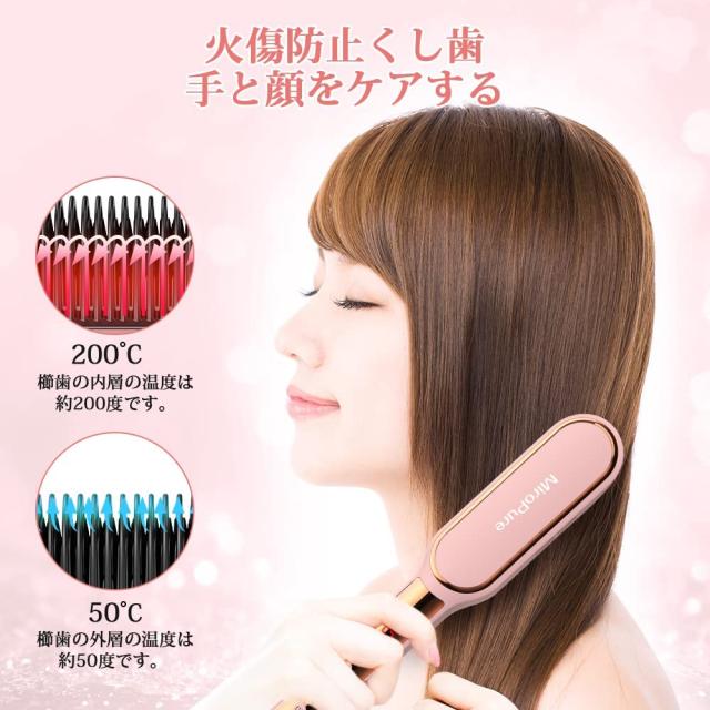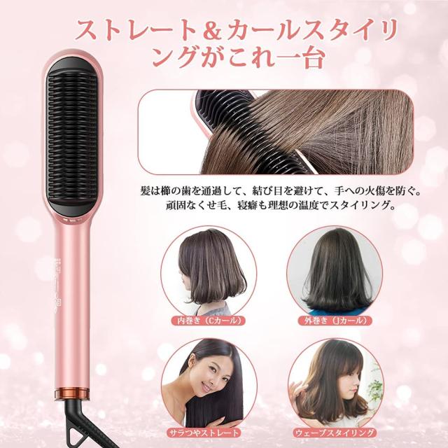 ストレートヒートブラシ ヘアアイロン マイナスイオン千万級&遠赤外線 ヒートブラシ 2way ストレートとカール両用 ヘアアイロンブラシ PSE認証済 携帯用 旅行 送料無料