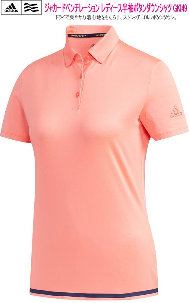 2020年春夏モデル50%OFF! アディダス ジャカードベンチレーション 半袖ボタンダウンシャツ レディース ゴルフ ウェア 「Adidas GKI49」