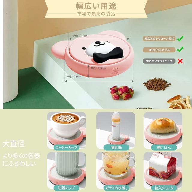 カップウォーマー オフィスウォーマー、電気飲料ウォーマー 水/牛乳/お茶/コーヒードリングなど飲み物 静音 保温 防水 強化ガラス材料 過熱時の自動電源オフ プレゼント 送料無料