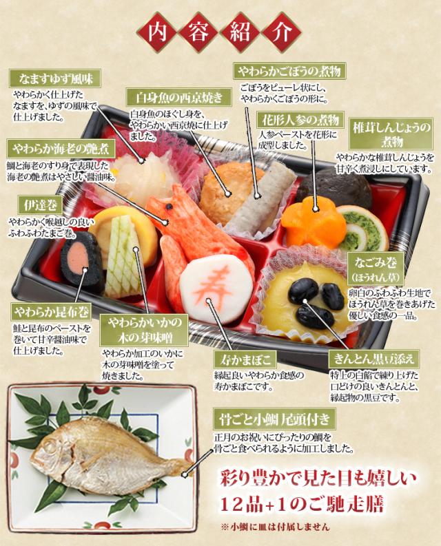 おせち 2025 介護食 やわらかおせち重 福寿 ふくなお (一段重12品+骨ごと食べられる小鯛)