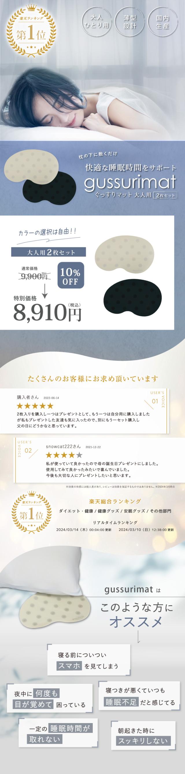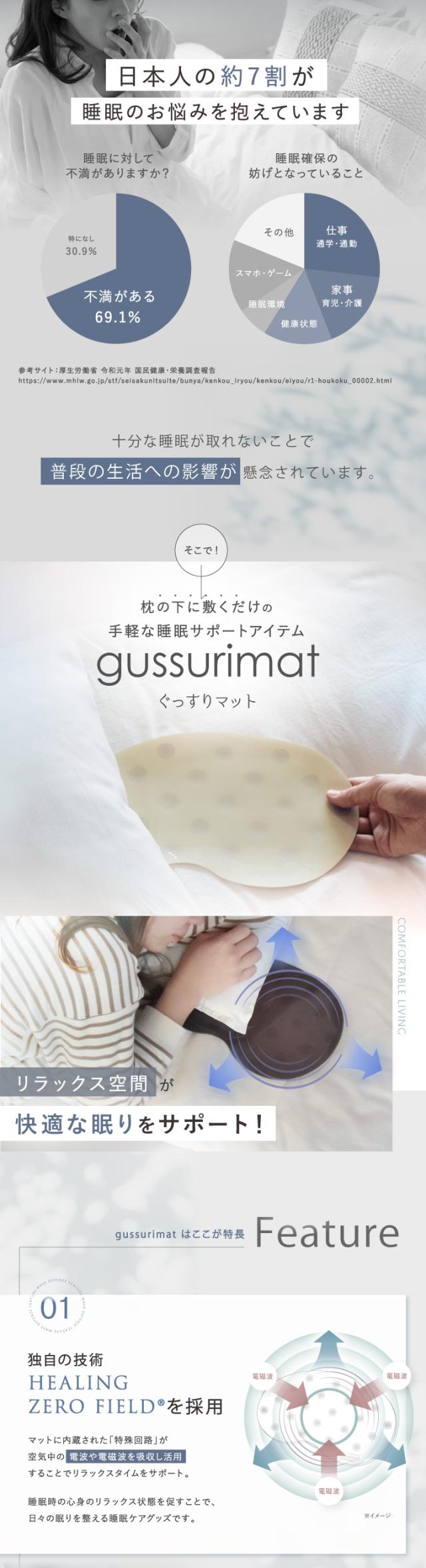 睡眠グッズ gussuri mat 2枚セット | 睡眠 睡眠不足 サポートマット 睡眠ケア 睡眠改善 ぐっすり 快眠 快眠グッズ 安眠 安眠グッズ 不眠改善 不眠症 サポート ケア グッズ メラトニン セロトニン 枕 寝具 健康 癒し リラックス 送料無料 日本製