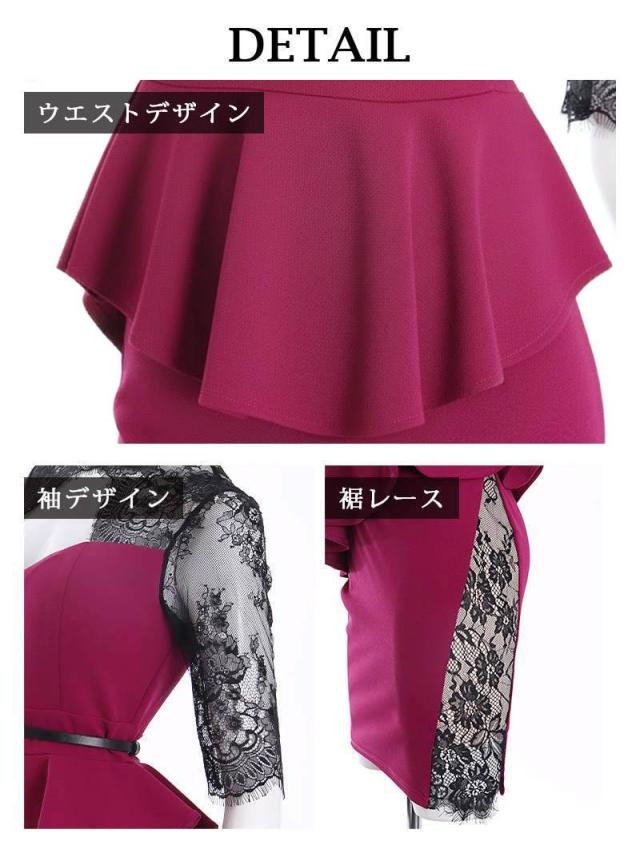 ☆二の腕をカバーする七分袖にお酒をたくさん飲んじゃっても安心のポッコリお腹を隠してくれるペプラムデザインで色気ある雰囲気をアピールしながら体型カバーもしっかりできる計算されたデザインが嬉しい袖付きドレスは付属の黒ベルトをハイウエストにONすれば脚長効果も期待できちゃうセクシードレスです。