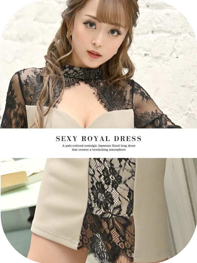☆ブラックレースから透ける素肌とバストカットデザインからの大胆な谷間見せがエロくお客様からの視線を奪うキャバドレスです。
