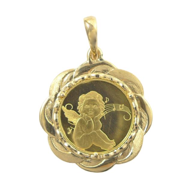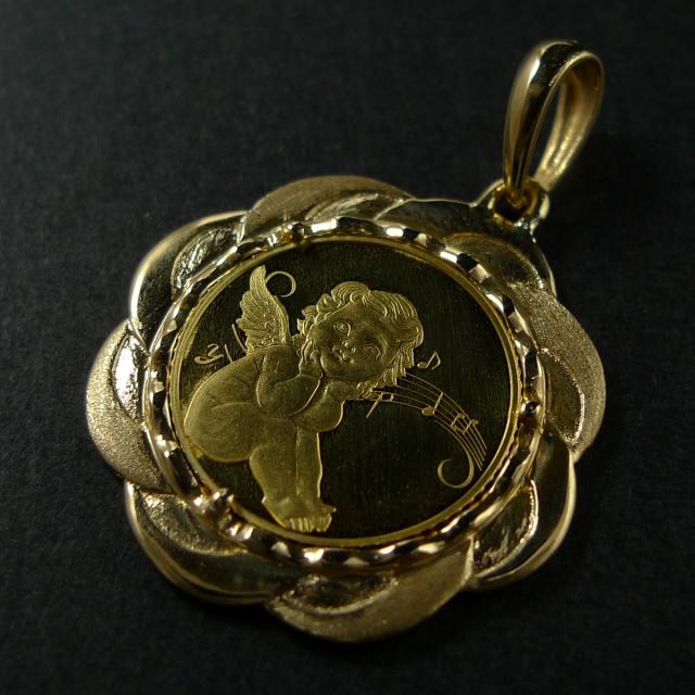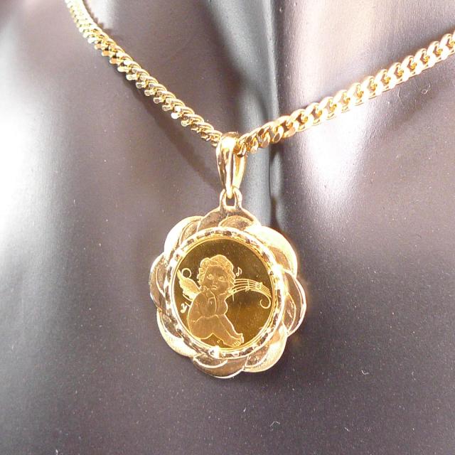 純金 k24 エンジェル コイン ペンダントトップ ソロモン 金貨 24金 25分の1オンス 3.6g 天使 エリザベス2世 メンズ レディース