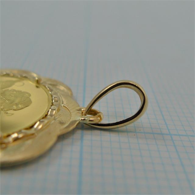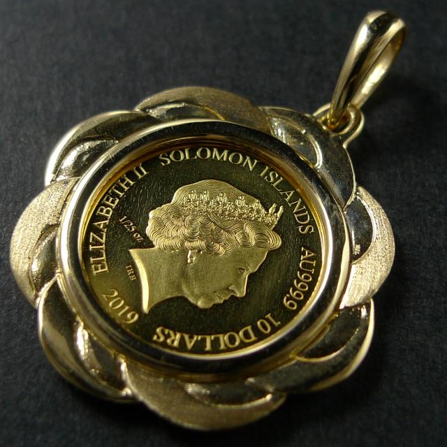 南太平洋の英連邦独立国・ソロモン諸島発行の1/25オンス純金コインに、K18製の枠が付いたペンダントトップです。