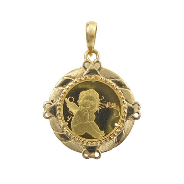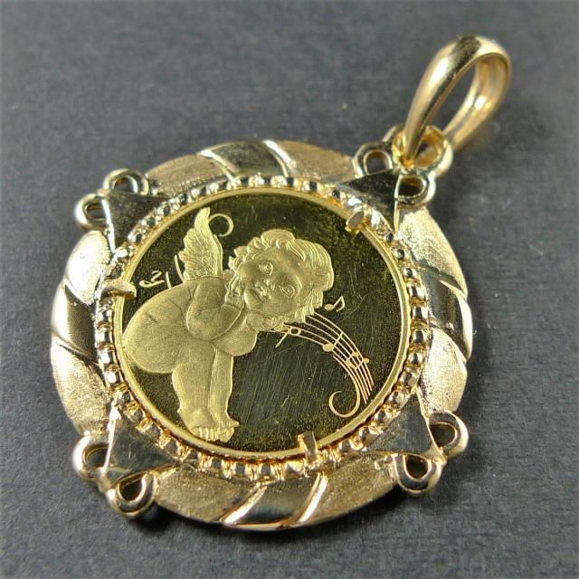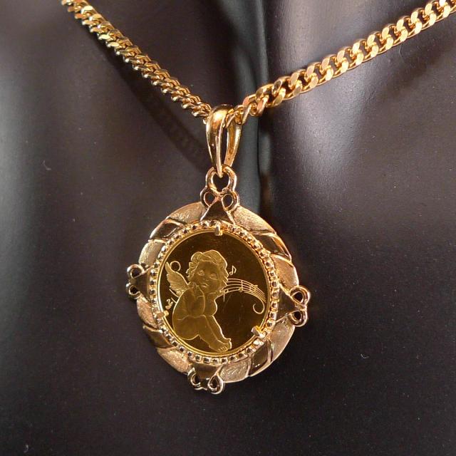 純金 k24 エンジェル コイン ペンダントトップ ソロモン 金貨 24金 25分の1オンス 3.8g 天使 エリザベス2世 メンズ レディース