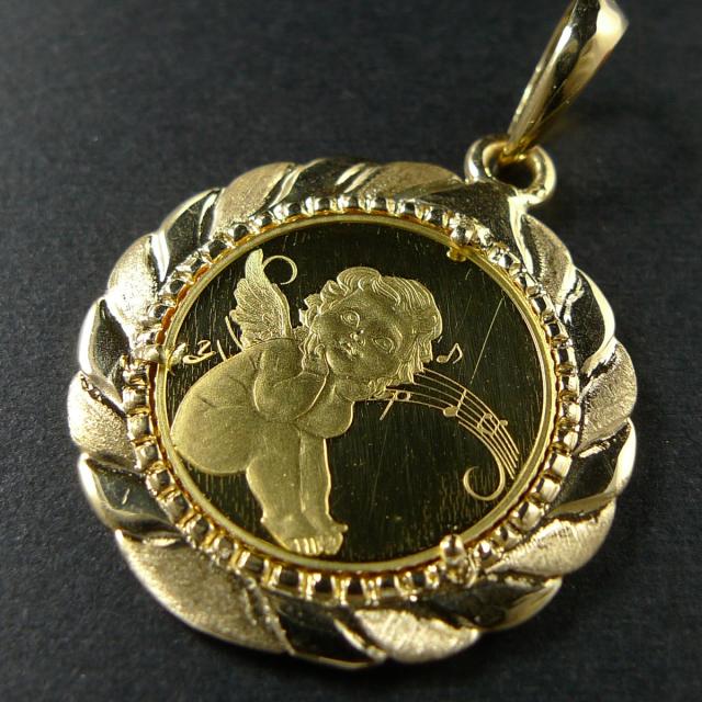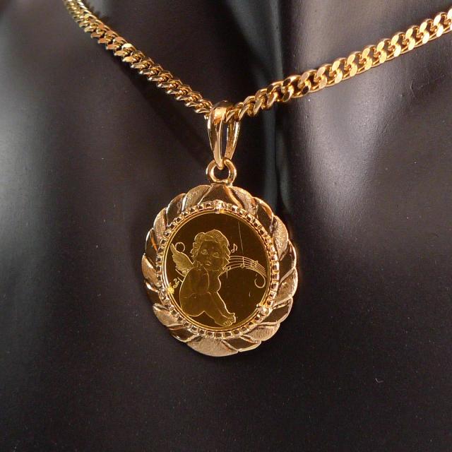 純金 k24 エンジェル コイン ペンダントトップ ソロモン 金貨 24金 25分の1オンス 3.5g 天使 エリザベス2世 メンズ レディース