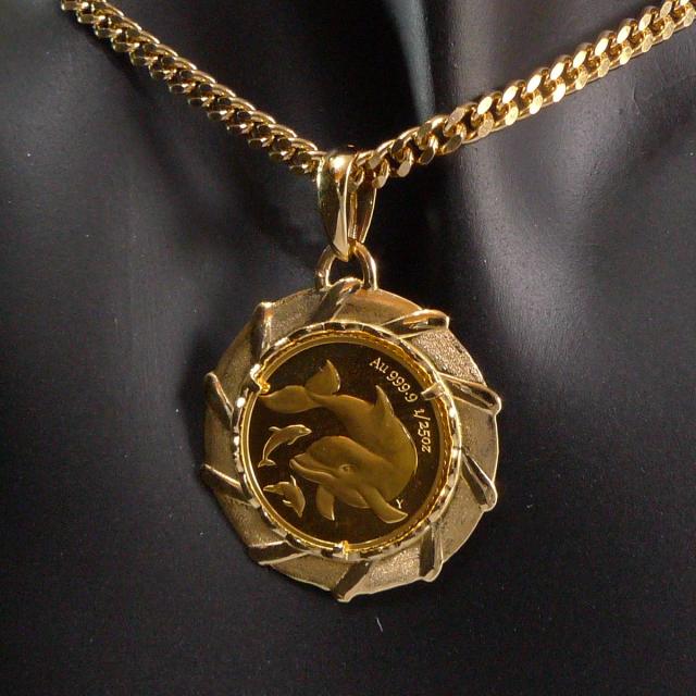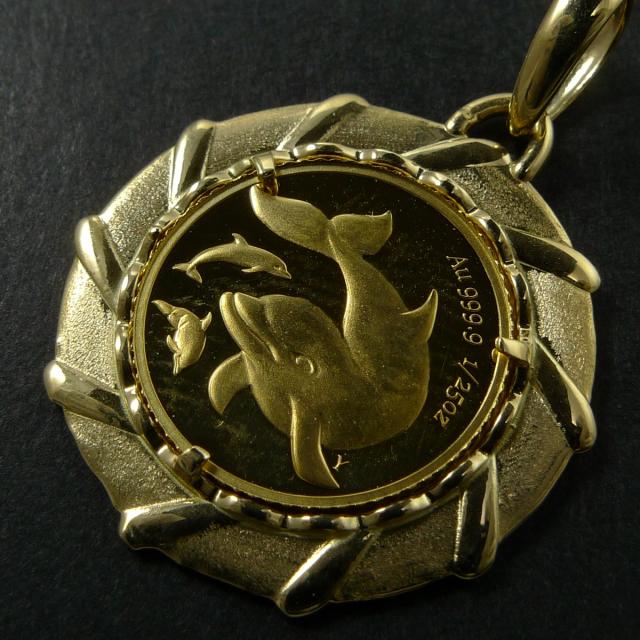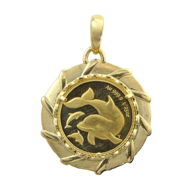 純金 k24 ドルフィン コイン ペンダントトップ ソロモン 金貨 24金 25分の1オンス 3.0g イルカ エリザベス2世 メンズ レディース