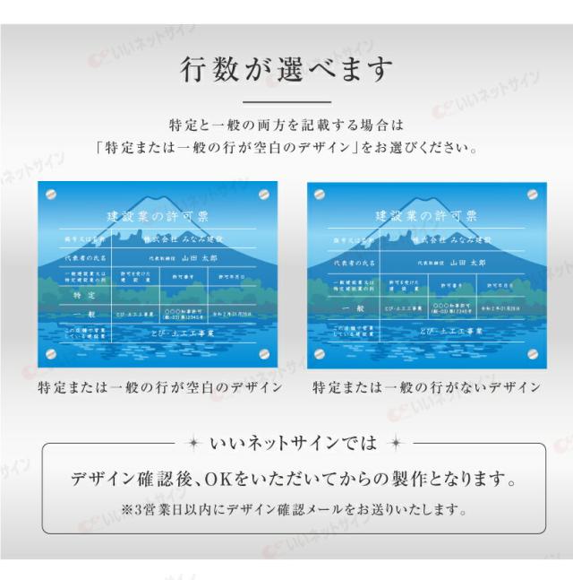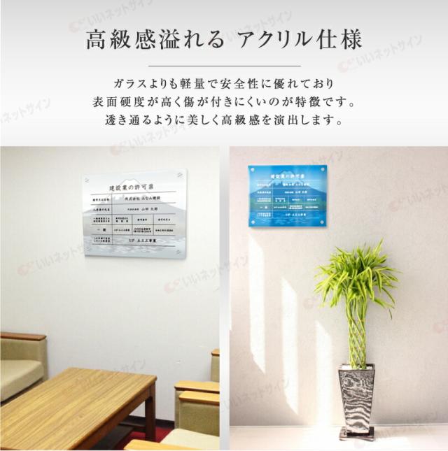 業者票 建設業の許可票 透明アクリル H35×W45cm 選べるデザイン 壁付けタイプ 化粧ビス 許可票 建設業許可票 不動産 法定看板 事務所 店舗 金看板 ken-acryl-design01