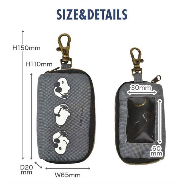 スマートキーをそのまま操作できる!便利な透明窓とカラビナ金具付きのスマートキーケース。大きく開くファスナーポーチの中には落下防止のリング付き。大切なキーをしっかりホールドしてくれます。シンプルなスヌーピー柄で年齢・性別問わず使えるアイテムです。プレゼントやギフトにも◎