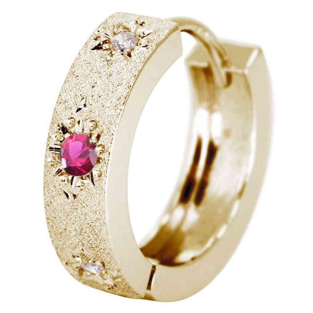 フープピアス メンズ 中折れ 片耳 ピアス フープ 10k 10金 誕生石 7月 ルビー 人気