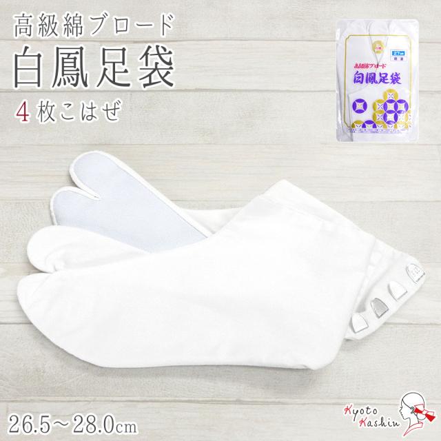 【2足までメール便発送無料】白鳳足袋 綿ブロード 4枚こはぜ 足袋 さらし裏 白 綿 日本製 高級 ブランド 白足袋 ブロード足袋 通年用 女性用 男性用 26.5〜28.0cm 大きいサイズ