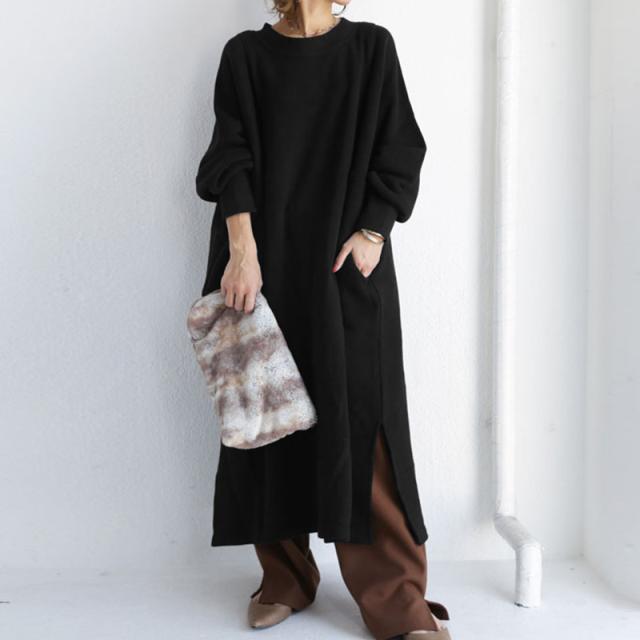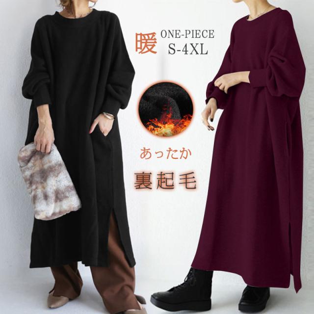 裏起毛 ワンピース パーカーワンピース クルーネック レディース 秋冬 長袖 暖かい 極暖 あったか ビッグシルエット ゆったり