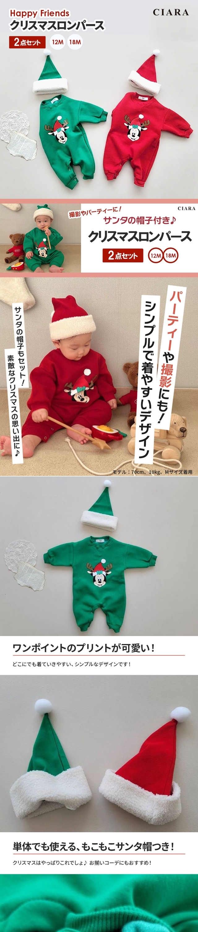 レビューでおまけ ベビー コスチューム ロンパース コスプレ サンタ ディズニー ミニー セット 帽子 新生児 長袖 裏起毛 赤ちゃん 男の子 女の子 子供服 おしゃれ かわいい キッズ 子供 パーティー 未使用 ポイント消化 クリスマス ギフト 冬