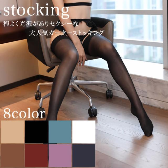レディース ストッキング セクシーストッキング ガーターストッキング 上品 高級感 光沢 透け感 美脚 8色 ワインレッド パープル ポイント消化 プレゼント