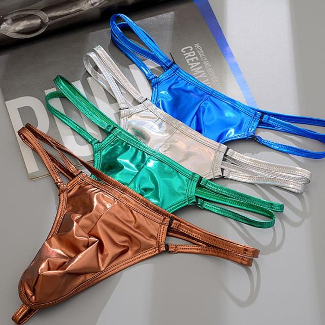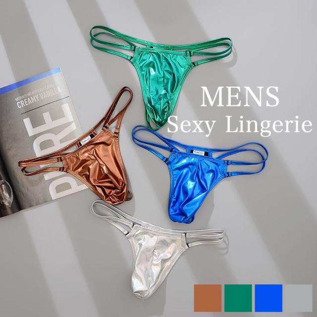 メンズ セクシーランジェリー メンズセクシー下着 セクシーショーツ 男性用 Tバック メンズTバック レザー風 ダブルストリング 4色 ポイント消化 ビッグサイズ