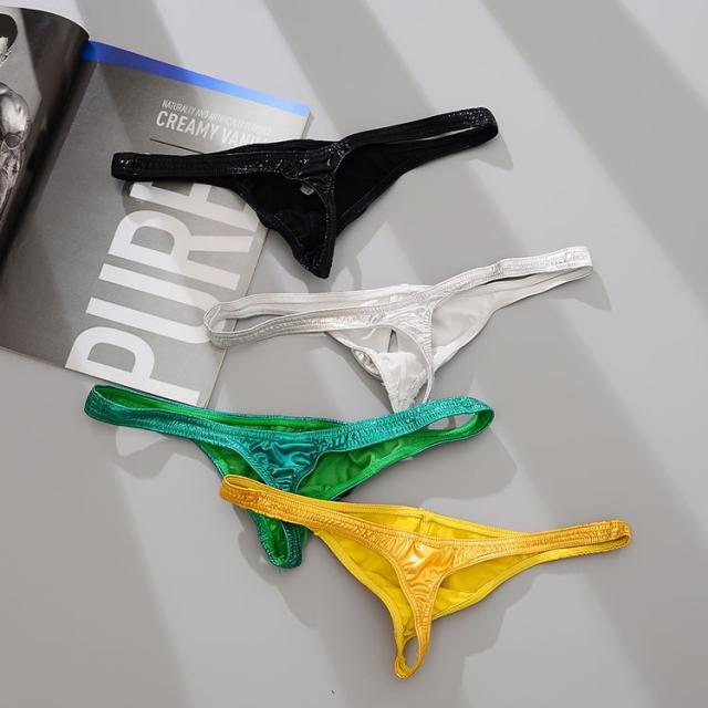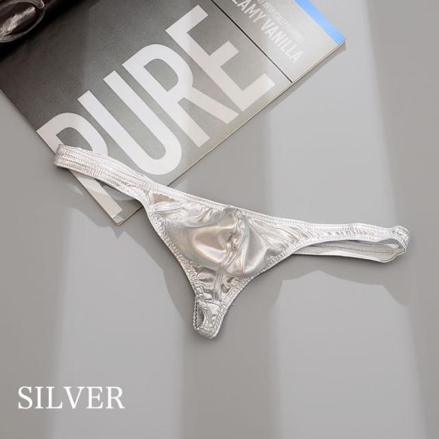 メンズ セクシー下着 セクシーショーツ 男性用 Tバック メンズTバック レザー風 シルバー ブラック ゴールド グリーン 光沢 ビッグサイズ ポイント消化