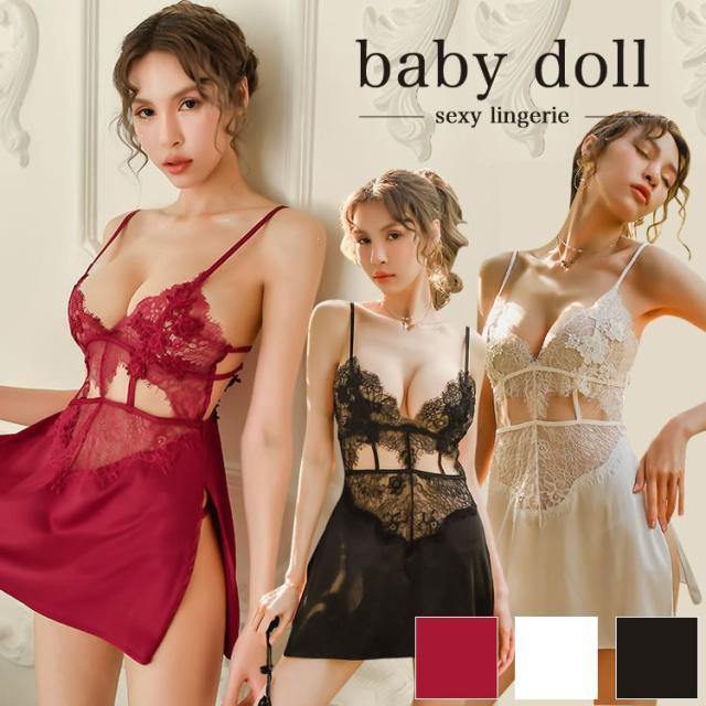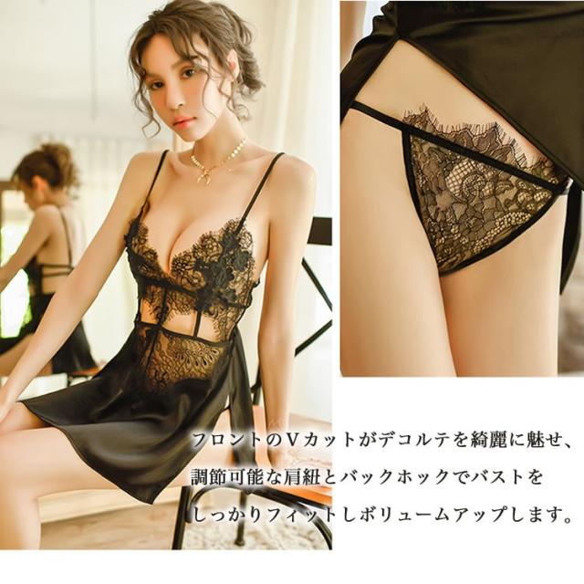 セクシーランジェリー レディース プレゼント セクシー下着 シースルー下着 ベビードール キャミソール 刺繍レース 高級感 上品 光沢 3色 ポイント消化