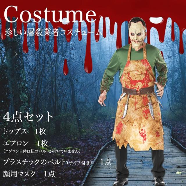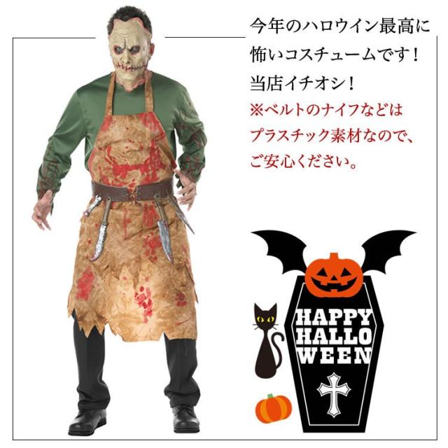 ハロウィン メンズ コスチューム 怖い系コスプレ 屠殺業者 血まみれ ブッチャー 恐怖 屠殺夫 お肉屋さん Halloween コスプレ 仮装 マスク付き 送料無料