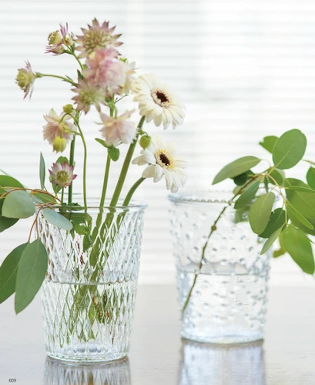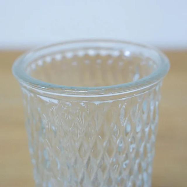 ガラスに施された重量感のあるエンボスと、ガラスの器ならではの透明感と明るい雰囲気。
