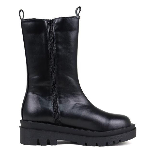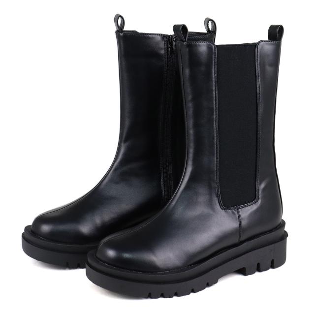 【返品交換不可】ブーツ レディース 厚底 5cmヒール ミドルブーツ メンズ ユニセックス 大きめサイズ 歩きやすい サイドゴア サイドジップ 履きやすい 秋 冬 No.9089 22.0-27.0cm 黒 ブラック 白 ホワイト LiBERTYDOLL リバティードール