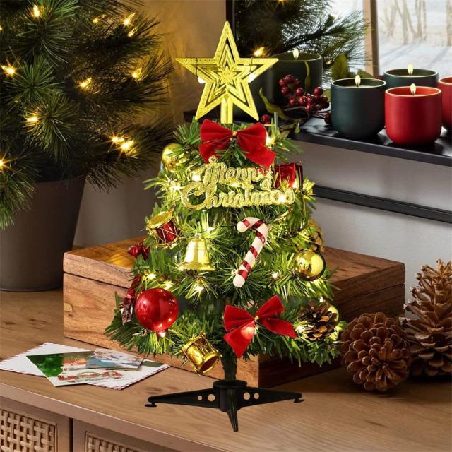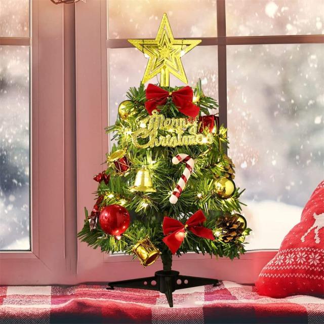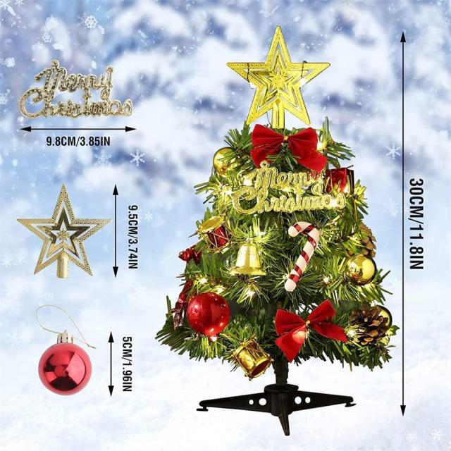 クリスマスツリー 30cm ミニツリー 卓上 豪華なオーナメント クリスマスオーナメント 2m LEDライト付き