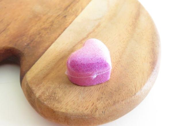 ハート型の愛らしい発泡入浴料(バスフィズ)が4粒入り。浴槽のお湯約200Lに入れて、1回または2回の入浴が楽しめる。 |