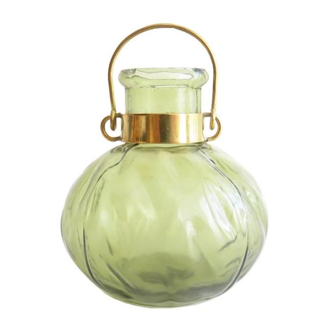 陽の光にあてると、ガラスと真鍮がキラリと光りとても印象的。季節の草花を生けたり、オブジェとしてもお楽しみ頂けます。 |