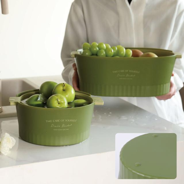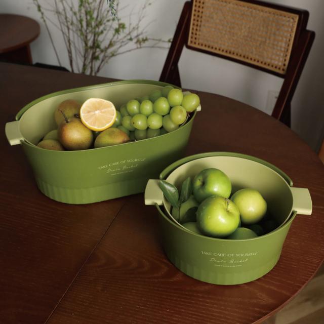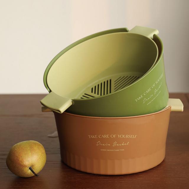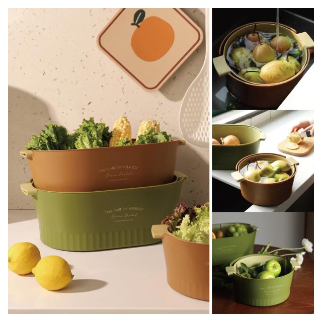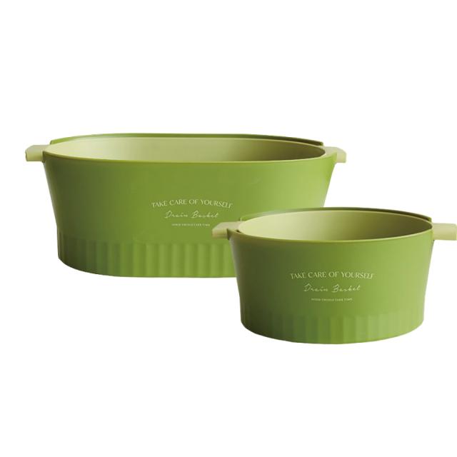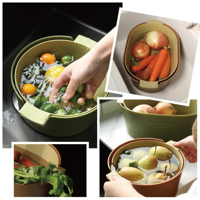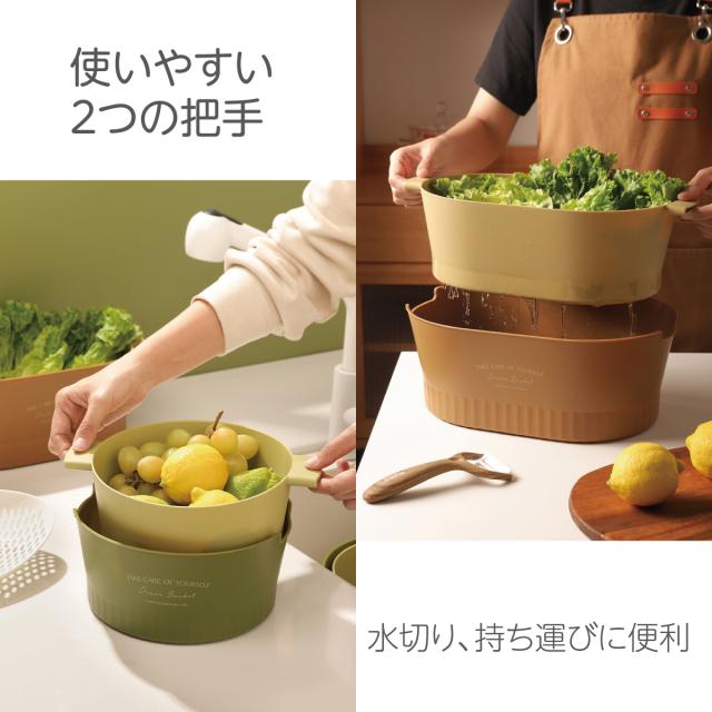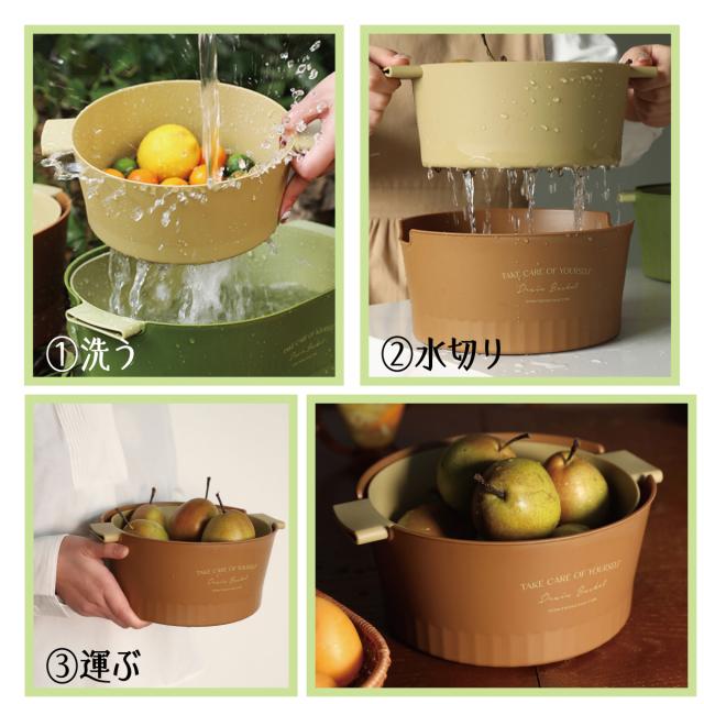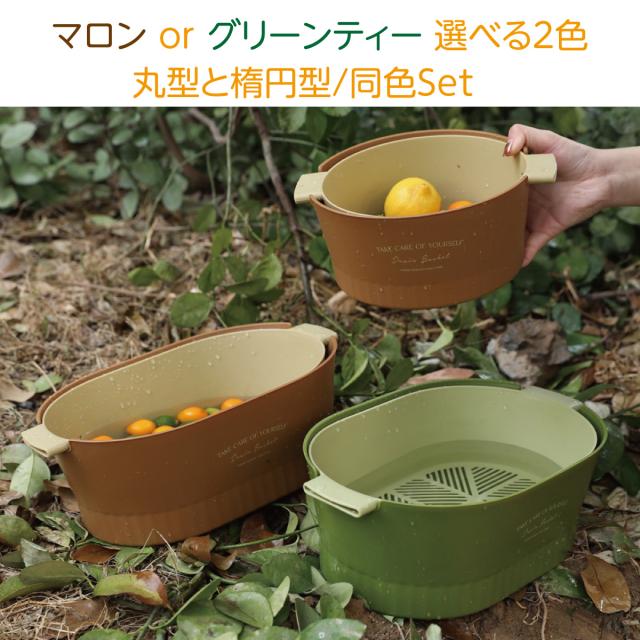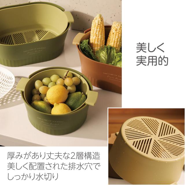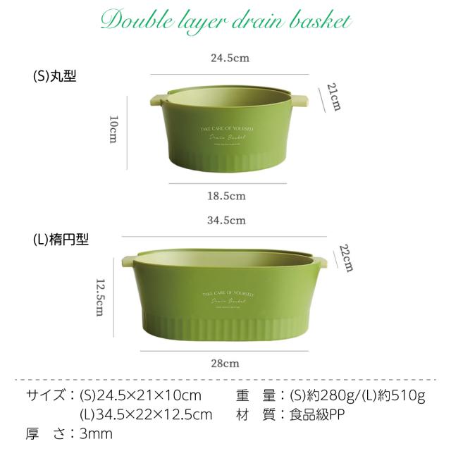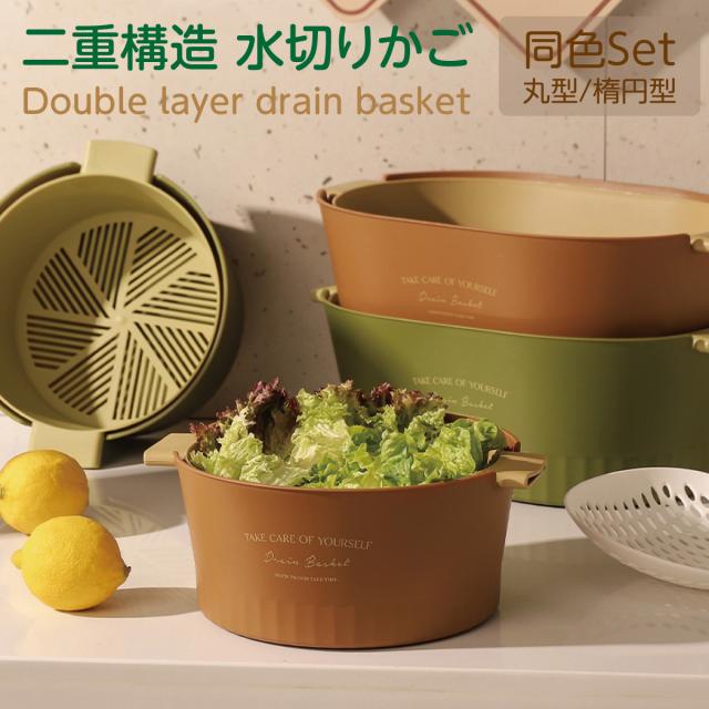 水切りボウル 水切りかご 2重構造 丸型 楕円型 2セット 水切りバスケット 水切りカゴ 野菜 果物 洗い 便利 おしゃれ 2drain-basket