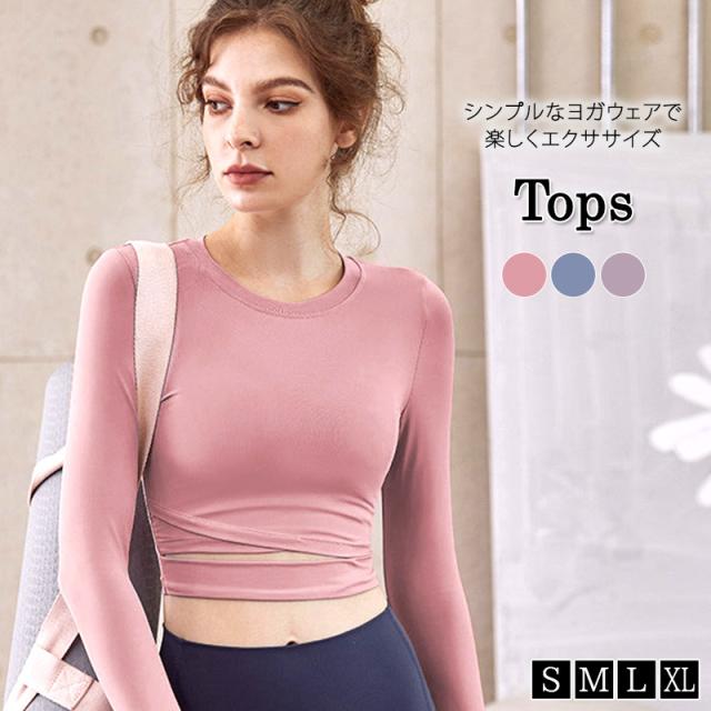 春新作 ヨガウェア レディース 長袖 トップス 薄手 クロップド丈 オープンクロス サムホール 指穴 おしゃれ かわいい 韓国 シンプル 無地 くすみカラー へそ出し ウエスト 細見え フィットネス ホットヨガ ピラティス ストレッチ ダンス エアロビクス 吸水 速乾