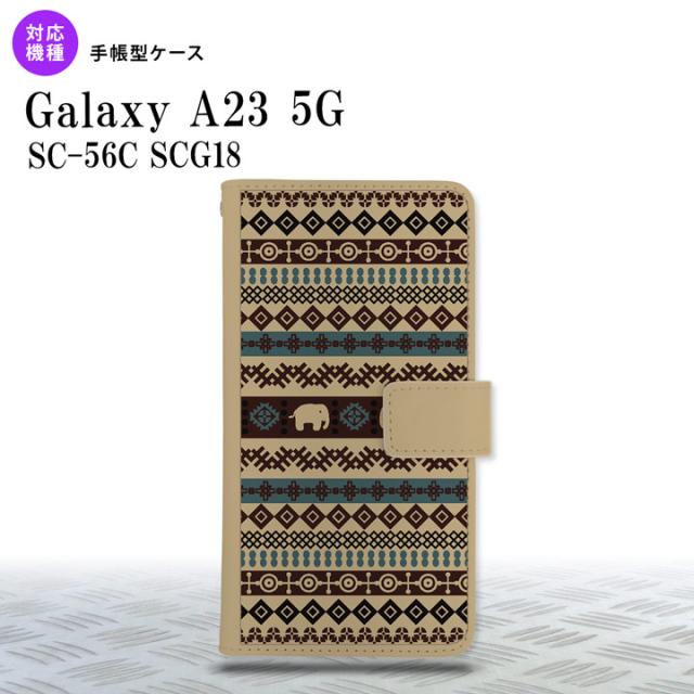 Galaxy A23 GalaxyA23 手帳型スマホケース カバー エスニック ゾウ ベージュ ブルー 2022年 10月発売 nk-004s-a23-dr1572