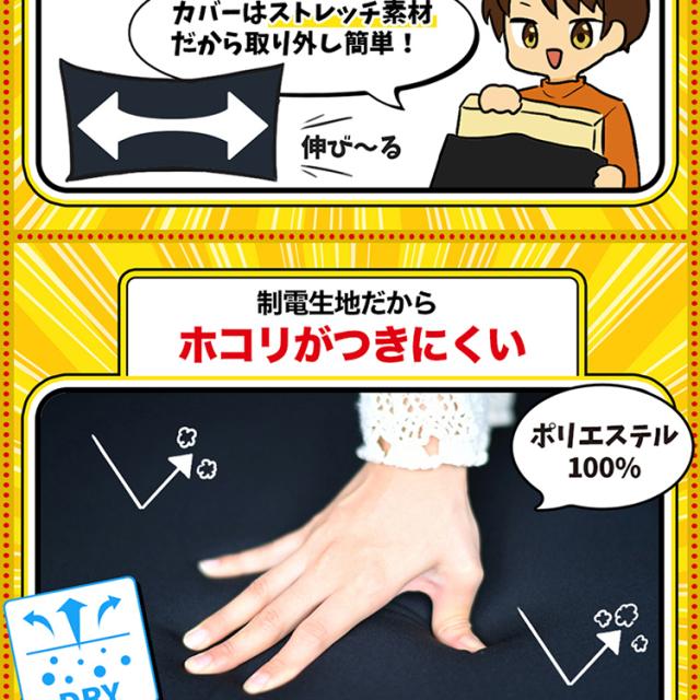 | 商品内容 | フラットクッション×4個 取扱説明書×1枚 表生地: ブラック:ポリエステル100%制電糸使用 中材:硬質ウレタン |