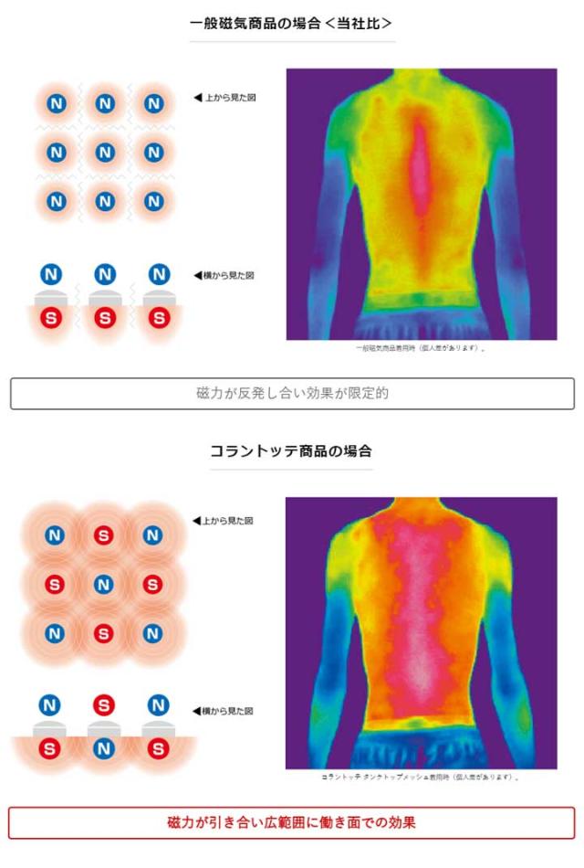 N極S極交互配列で配置。装着部位の血行を改善、筋肉のコリを緩和します。