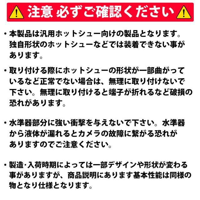 ・本製品は汎用ホットシュー向けの製品となります。独自形状のホットシューなどでは装着できない事があります。