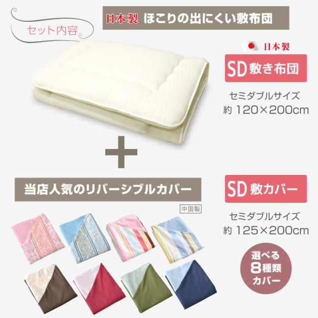 \カバー新色追加しました/選べるカバーと日本製敷き布団のセット【セミダブルサイズ】