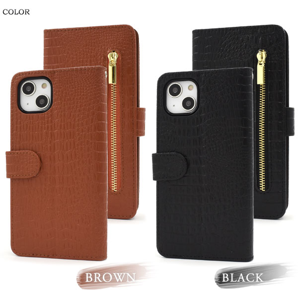 | 衝撃やキズなどからスマートフォンを守ります。 また、内部はソフトケースなので着脱が簡単です。 背面を折り返すとスタンドとして使用できるので、動画視聴に便利です。 横開きタイプなので、手帳のように使うことができます。 落下防止に最適なストラップホール付きです。 外側にファスナーポケットが付いているので、ちょっとした財布や小銭入れ代わりになって便利! また、内側に2つのカードポケットとサイドポケットが付いています。 高級感溢れるクロコダイルレザーデザイン。 ビジネスやカジュアルなど様々なシーンで活躍します。 | ||||||||||||||