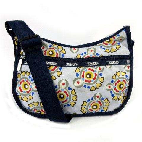 【中古】レスポートサック LesportSAC ショルダーバッグ 鞄 ナイロン 総柄 ブルー系 青系 紺 マルチカラー
