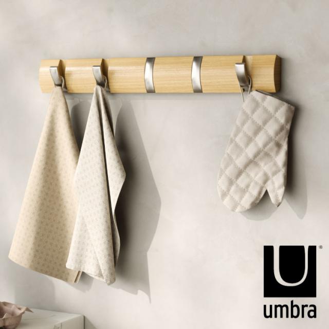 umbra アンブラ フック 5連 フリップフック フック ウォールハンガー ハンガーフック マルチフック ハンガー 収納 壁面収納 壁付け ホワイト ナチュラル 北欧 おしゃれ 幅50.8cm 奥行3.5cm 高さ6.5cm【送料無料】
