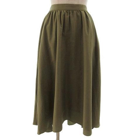 【中古】リヴドロワ RIVE DROITE スカート フレア ミディ丈 テールカット ウエストゴム シンプル カーキ 緑系 38