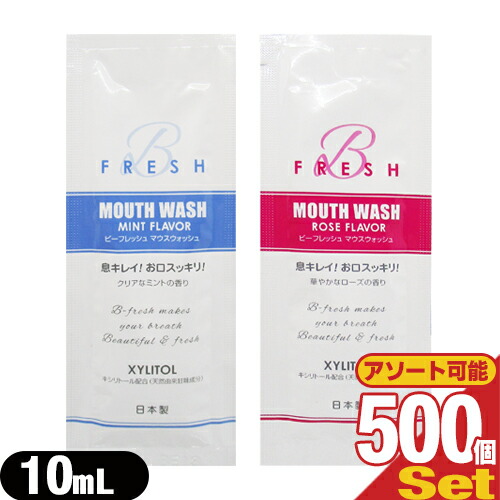 【あす着】【ホテルアメニティ】【携帯用マウスウォッシュ】【個包装】マウスウォッシュ ビーフレッシュ(MOUTH WASH B fresh) パウチ 10ml (ローズの香り・ミントの香り) x 500包セット(アソート可能)