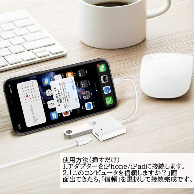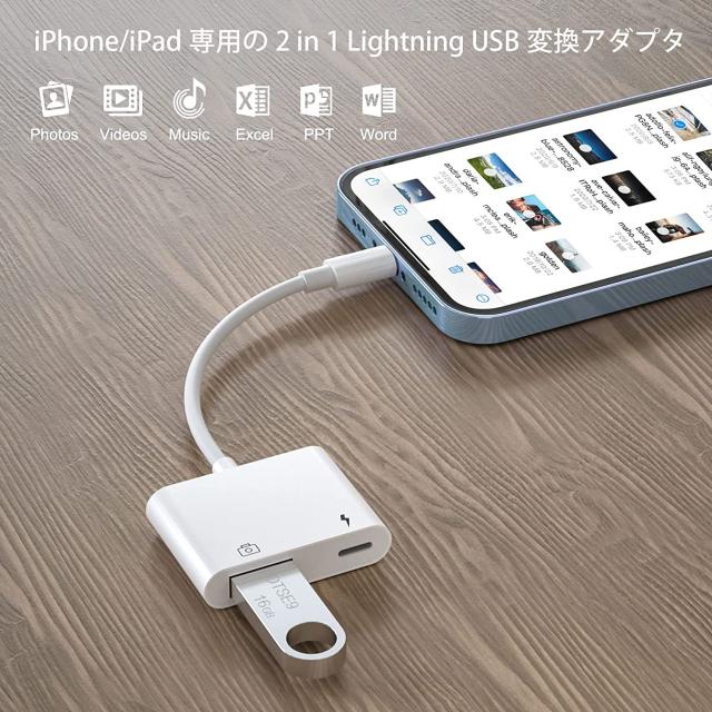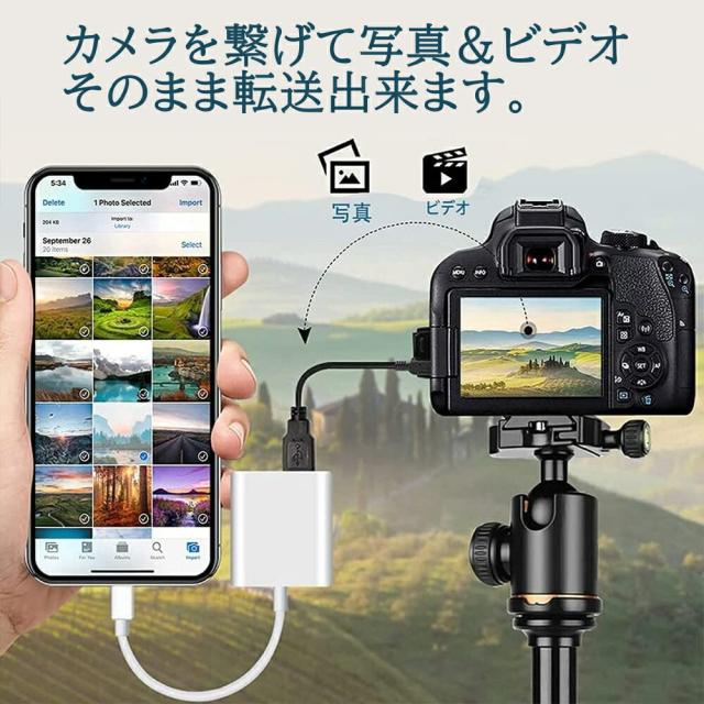 Lightning USB 3 カメラ アダプタ iPhone iPad USB カードリーダー 最大2TBまで対応 MIDI キーボード カメラ 接続可能 高速な写真転送 USB 変換 アダプタ OTG 変換アダプタ アイフォン14 Pro 13 12 11 mini Plus