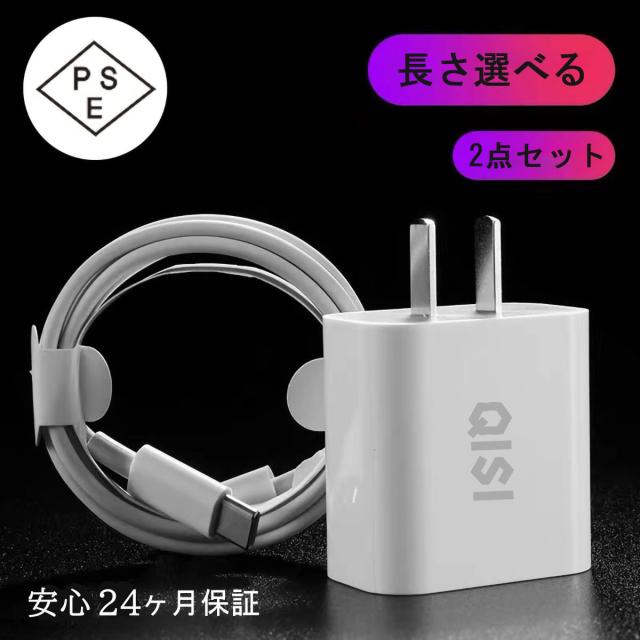 【超お得な2点セット】iPhone 急速充電器 20W ACアダプタ アイフォン 充電 ケーブル 長さ 2m 1.5m 1m PowerDelivery規格 USB C ライトニングケーブル type c iPhone 充電 コード タイプ c 充電器 iPad iPhone14 Pro 13 12 11 x 8 7 max mini Plus PSE認証 最大18ヶ月保証