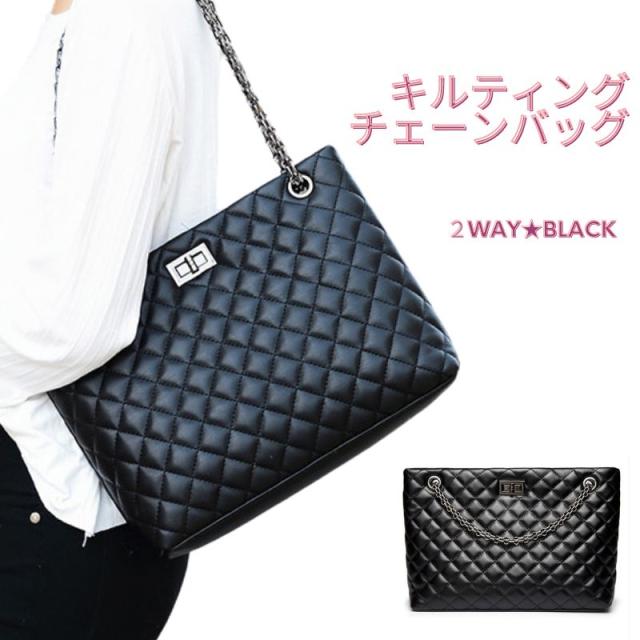 ショルダーバッグ チェーンバッグ レディース 2WAY ハンドバッグ ブラック 黒 ペットボトルが入る 自立 キルティング 軽量 防水 鞄 おしゃれ レザー 可愛い かわいい 人気 カバン 通勤 通学 レザー カジュアル