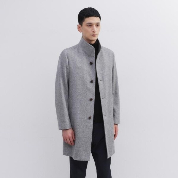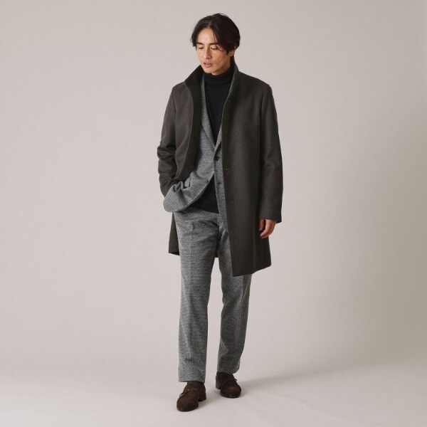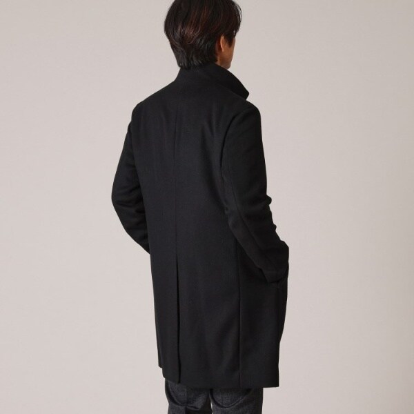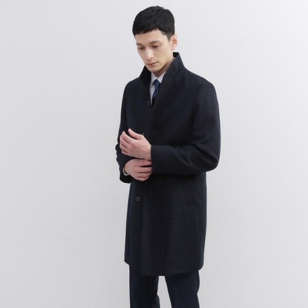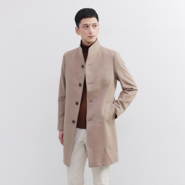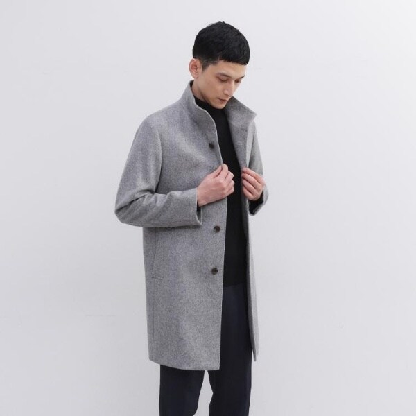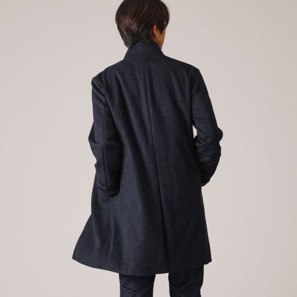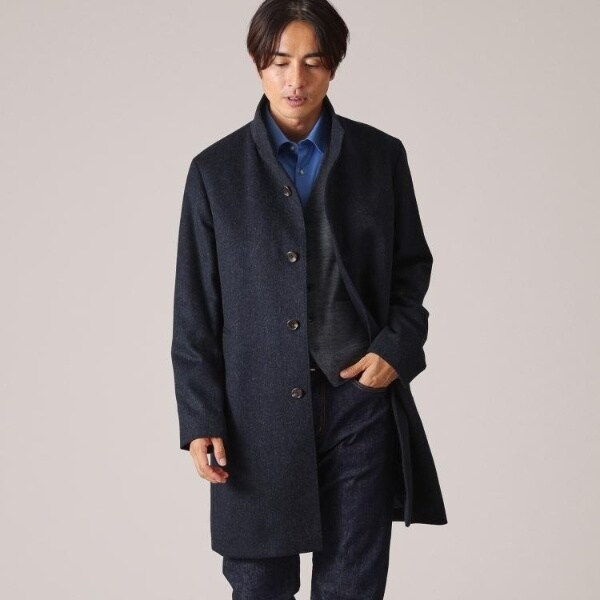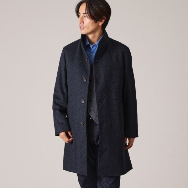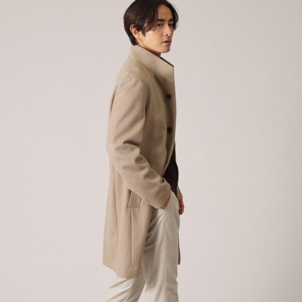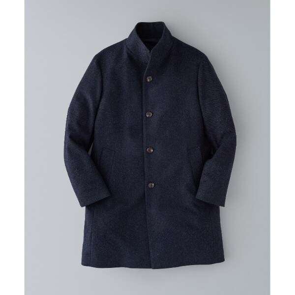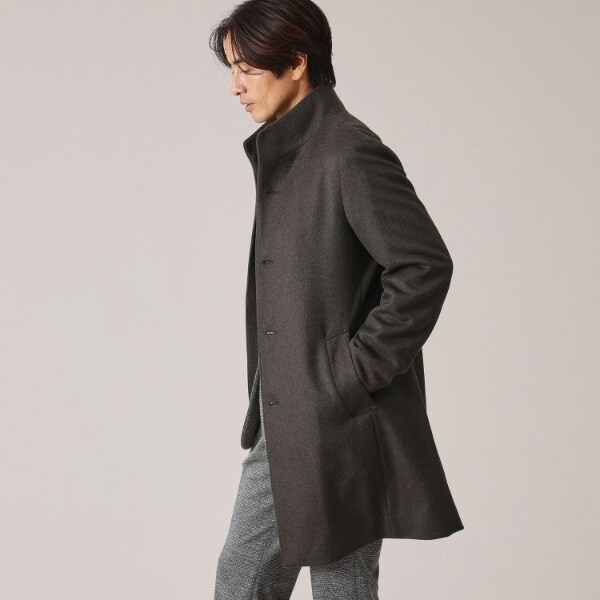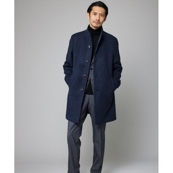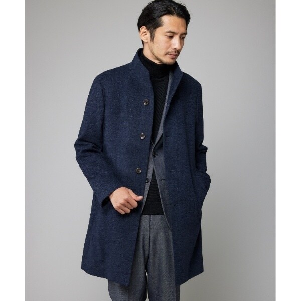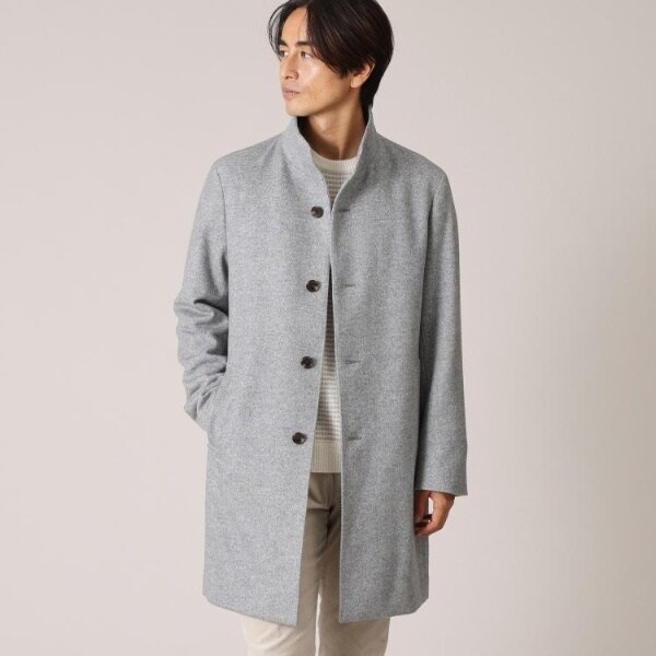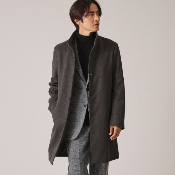 立ち衿が美しいカシミヤ混のスタンドカラーコート