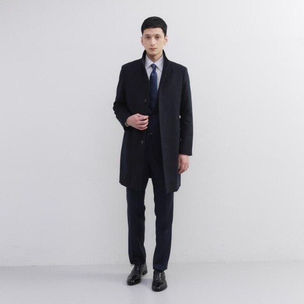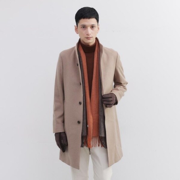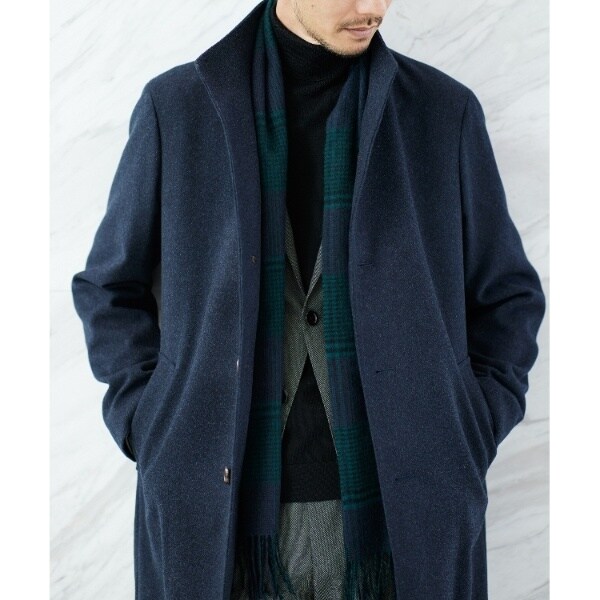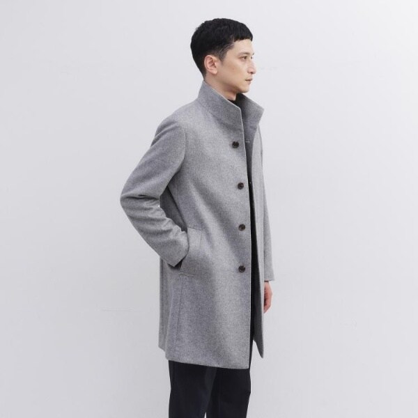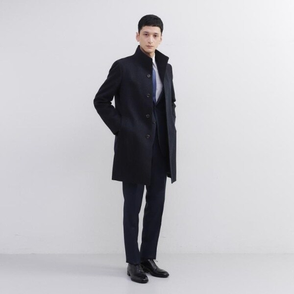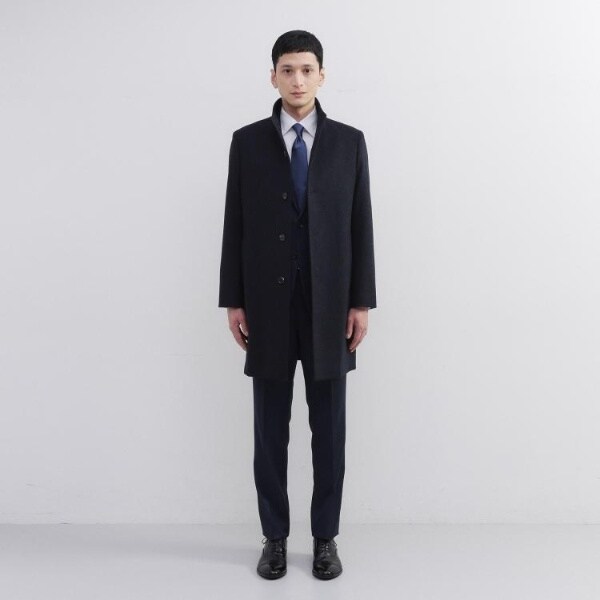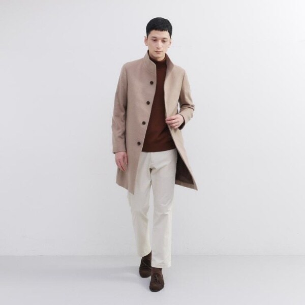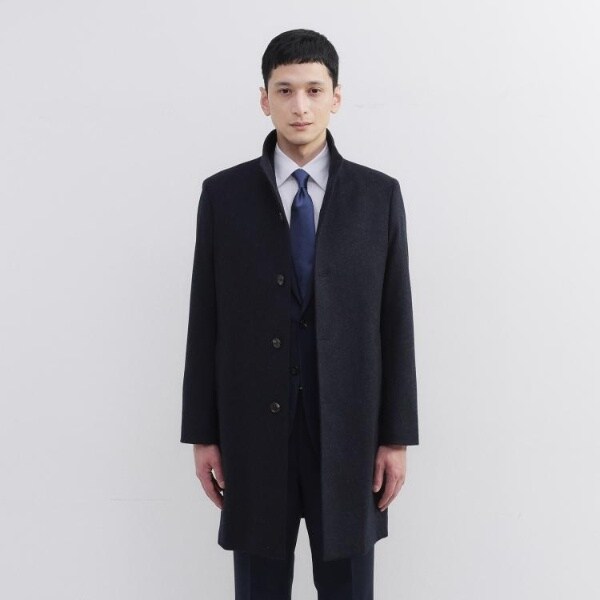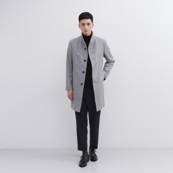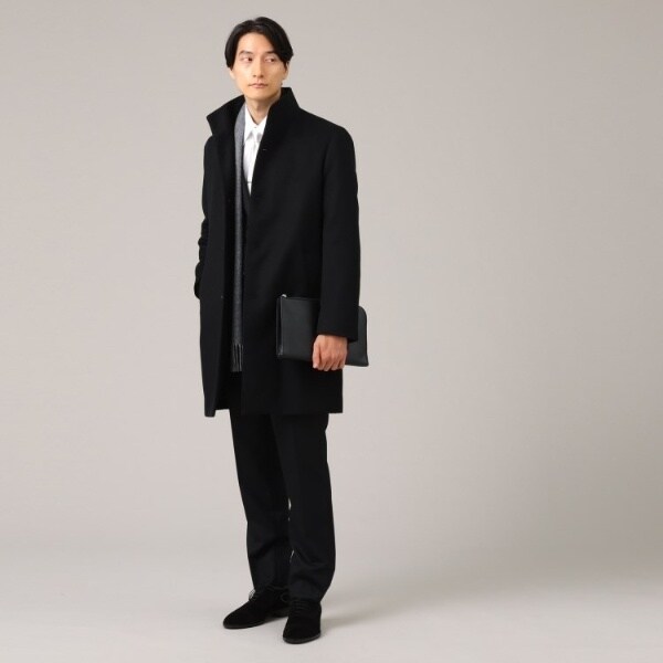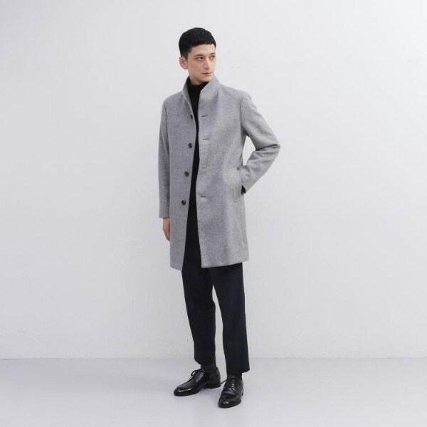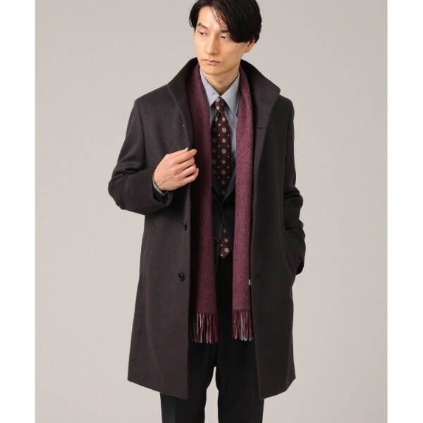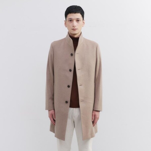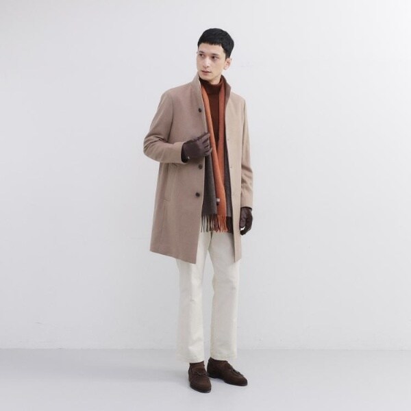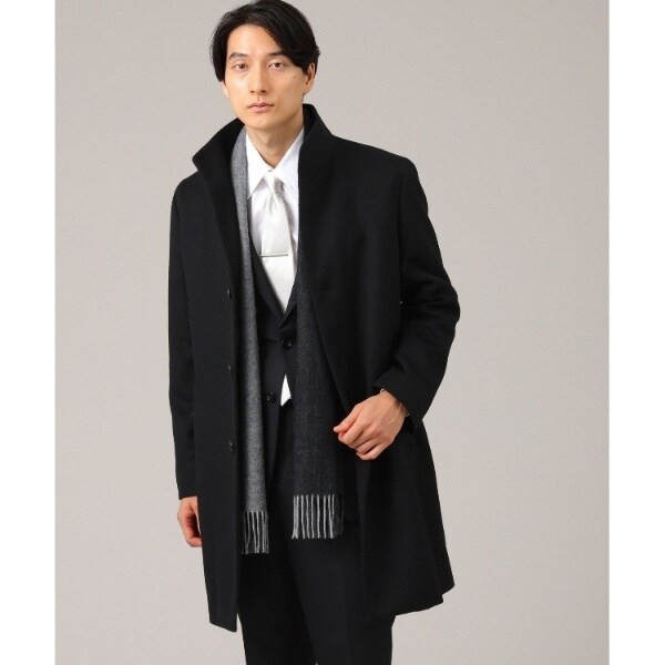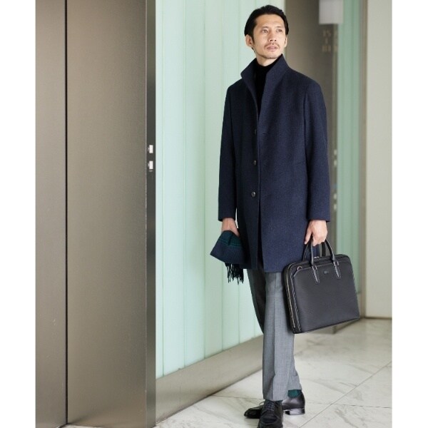立ち衿が美しいカシミヤ混のスタンドカラーコート