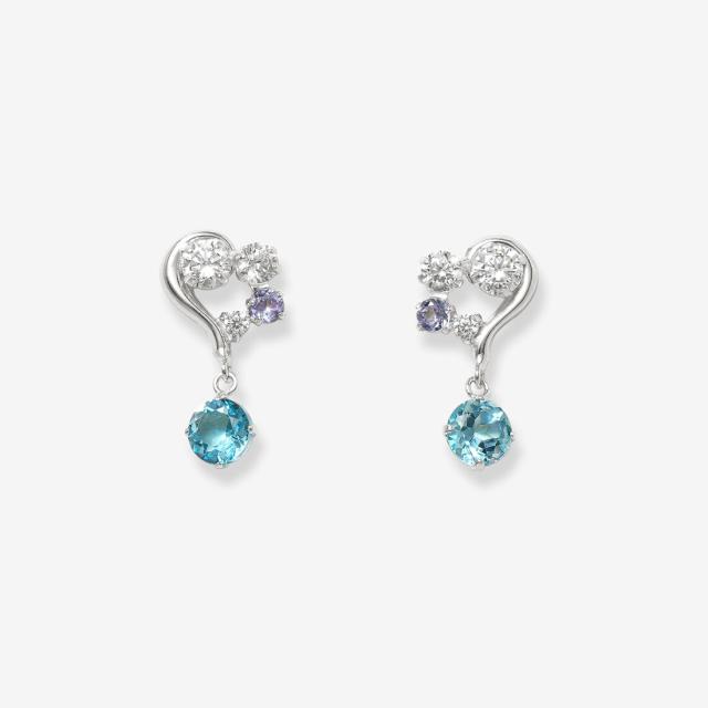 揺れるブルートパーズがアクセントになるホワイトゴールドのピアス。