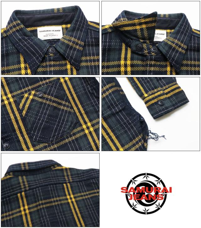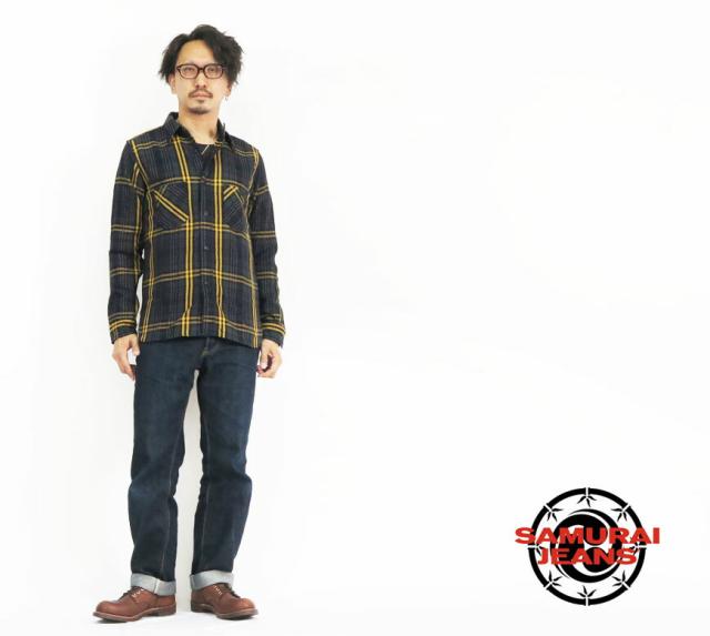 サムライジーンズ SAMURAI JEANS 長袖 ロープインディゴ ヘビーネル ワークシャツ SIN22-01