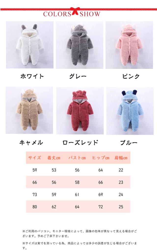 | ・耳付きでかわいいデザインのベビー用カバーオールです。 ・首元から足元まで、スナップボタンで着脱可能なロンパースタイプ。着替えやオムツ替えもラクラク! ・足先まですっぽり覆われているので、防寒性もばっちり! ・思わずほおずりしたくなる、とろける肌触りのマシュマロボアはギフトにもおすすめ♪ ・出産のお祝いとしても喜ばれそうですね◎ ・6カラーからお選びください。 | |