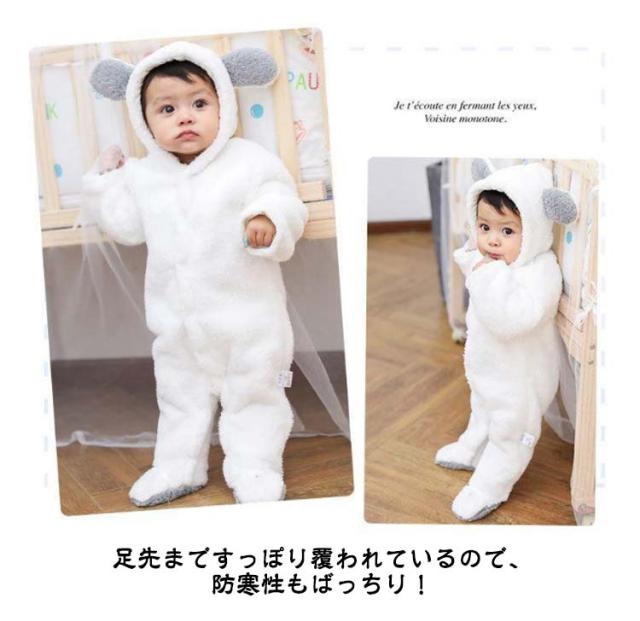 ロンパース きぐるみ くまさん ベビー服 足つき 新生児 赤ちゃん カバーオール ジャンプスーツ 長袖 フード付き 耳付き 前開き 男の子 女の子 女子 男子 プレゼント 出産祝い 暖かい 保温 春 秋 冬 無地 全6色