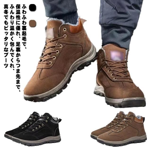 ブーツ 編み上げ メンズ 裏起毛 ワークブーツ ショートブーツ ムートンブーツ 男性用 カジュアル あったか 冬物 スノーシューズ 保温 おしゃれ 防寒 合成皮革 アウトドア